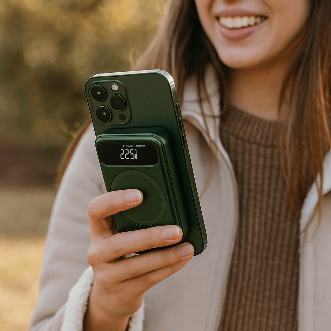 Keine Steckdose in Sicht? PowerCharge – Deine Energie immer griffbereit. Mit bis zu 200.000 mAh, magnetischem Halt und kabellosem 15W-Wireless-Charging versorgt Dich PowerCharge zuverlässig unterwegs – egal ob im Alltag, auf Reisen oder bei Abenteuern.